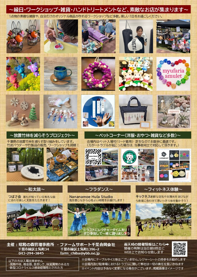 - イベント名:第9回 昭和の森マルシェ 千葉のいいもの市
