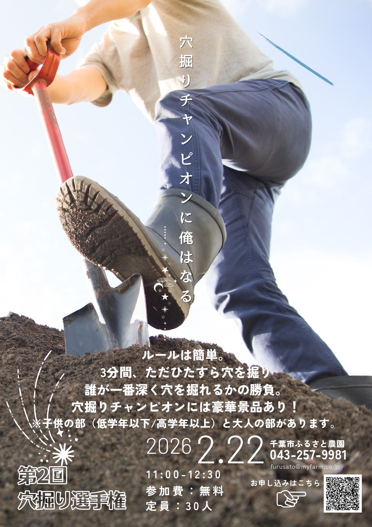 穴掘り選手権申込フォーム:https://docs.google.com/forms/d/e/1FAIpQLScRxj8oD1NUPimQACwdaTbuH2Xd95CojhH-w4LhgqwedRs9-Q/viewform?usp=publish-editor