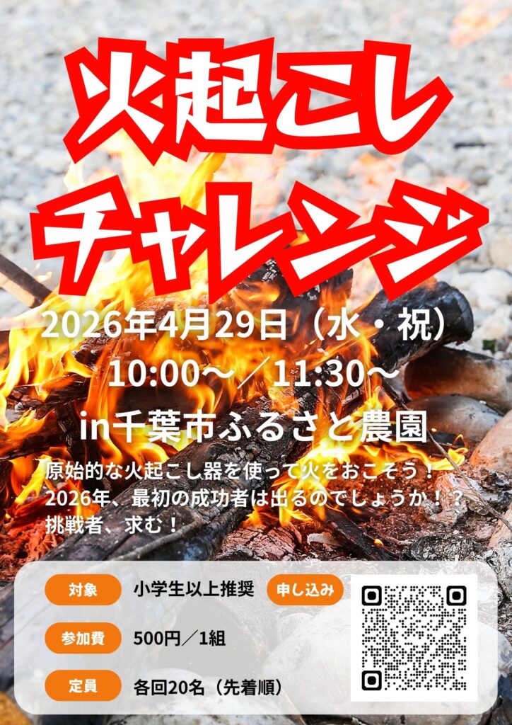 【4月29日(水・祝)】火起こしチャレンジ|千葉市ふるさと農園(花見川区)